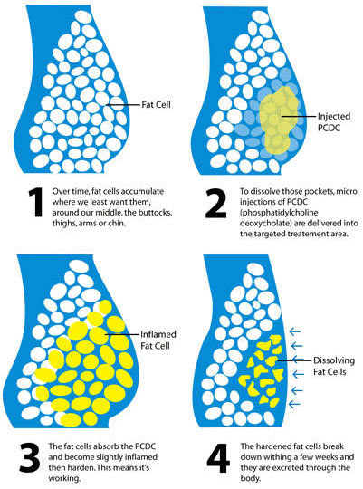 At the point when infused into greasy tissue with thin needles, the twofold layer of the fat cell film swell and solidify and the specialist, which acts like a cleanser, starts the fat breakdown, changing the fat cells into modest minimal fat particles of nano-measure (one millionth of a millimeter). The last procedure happens in the liver where the fat is totally separated into carbon dioxide and water.